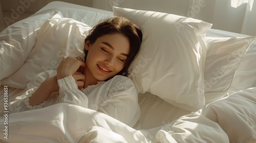 The happy woman in bed