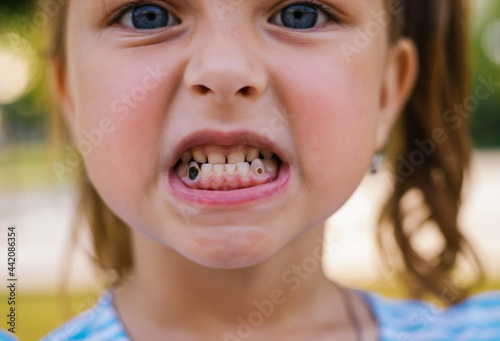 The smile of a child with baby teeth. Care for children's teeth.