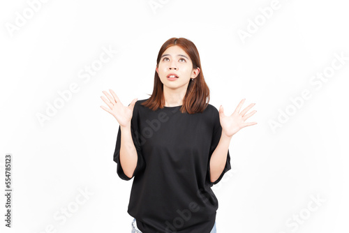 Think and Panic Gesture Of Beautiful Asian Woman Isolated On White Background