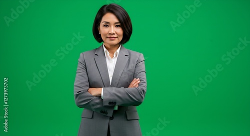 Thinking, business and woman on green screen for ideas, questions and brainstorming. Female model, serious worker generative ai