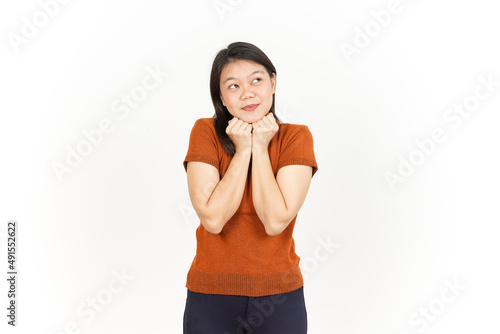 Thinking Gesture Of Beautiful Asian Woman Isolated On White Background