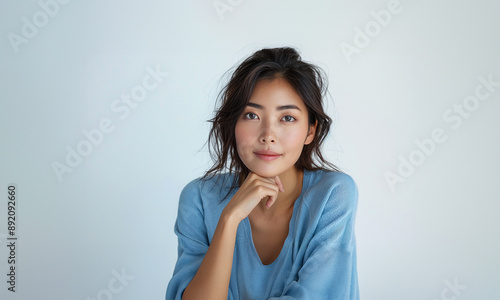 Thoughtful Asian woman pensive
