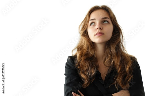 Thoughtful business woman isolated over a white backgorund