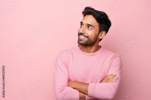 Thoughtful Indian Man Choosing Product Option on Mockup generative ai