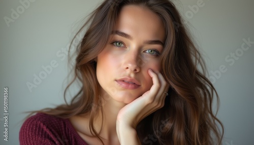 Thoughtful young woman with captivating green eyes