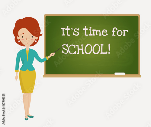 Time for school card with teacher.