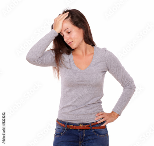 Tired young woman having a headache