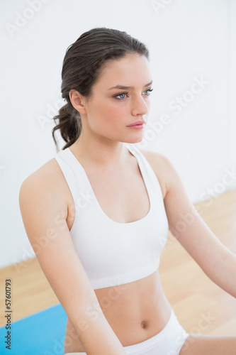 Toned brunette sitting at fitness studio