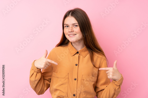 Ukrainian teenager girl over isolated pink background proud and self-satisfied