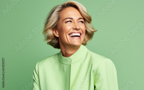 Ultra beauty businesswoman, smiling and laughing, wearing bright clothes. created by generative AI technology.