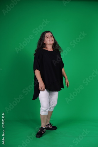 Unedited Portrait of Woman’s Face Expressing Various Emotions – Green Studio Background
