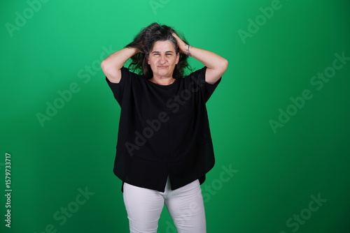 Unedited Portrait of Woman’s Face Expressing Various Emotions – Green Studio Background