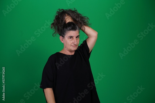 Unedited Portrait of Woman’s Face Expressing Various Emotions – Green Studio Background