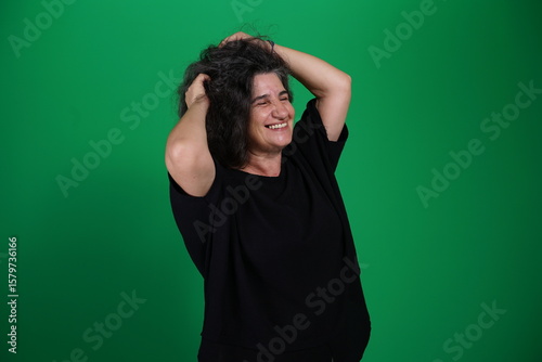 Unedited Portrait of Woman’s Face Expressing Various Emotions – Green Studio Background
