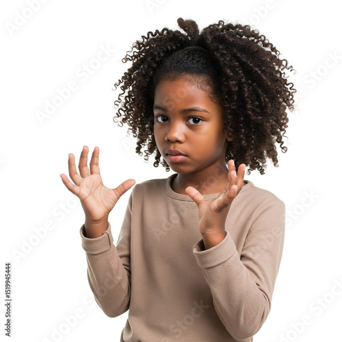 Unsure African-American Girl: Confused Child's Questioning Hands