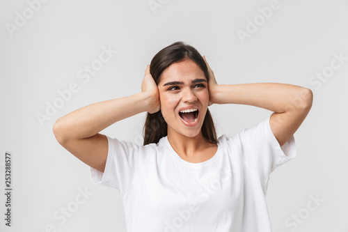 Upset young girl suffering from a headache