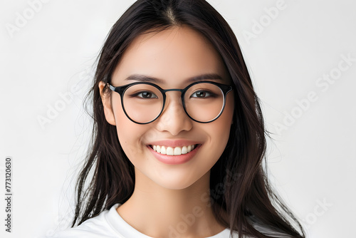 Variation 3d Closeup portrait of smiling beautiful Asian woman wearing glasses isolated on white background,