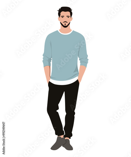 Vector illustration of a man in a light blue sweater and dark pants