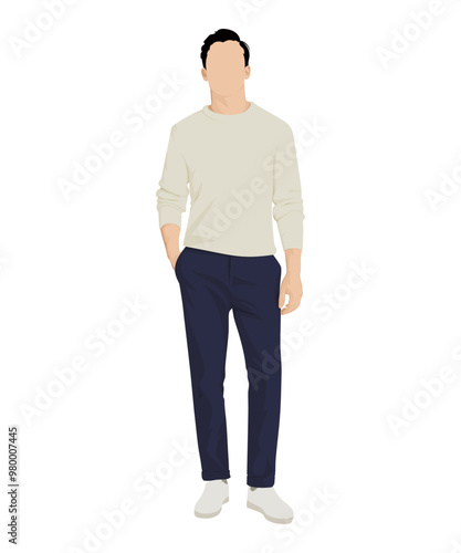 Vector illustration of a man in a light sweater and dark blue pants. Light casual