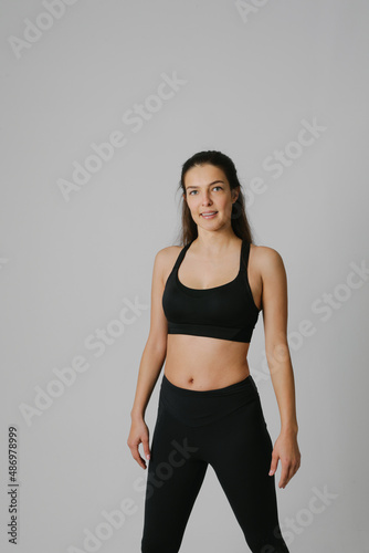 Vertical portrait of woman preparing yoga meditation in the studio.