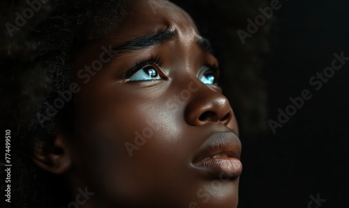 Violence and abuse of girls theme: portrait of a beautiful young girl with tears in her eyes, a sad woman in the studio