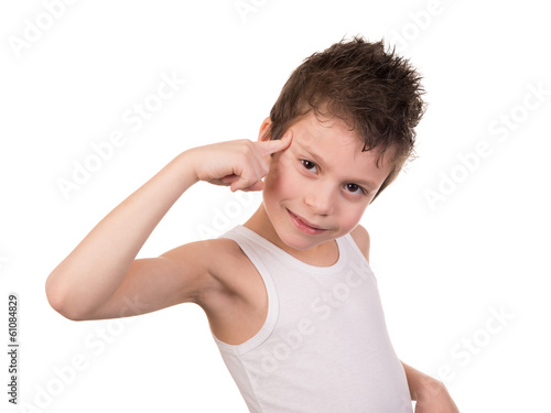 wet hair boy with emotion on white