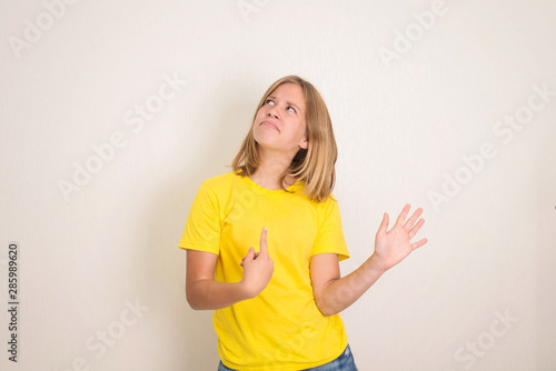 Who me? Not me! Teen girl rejecting the responsibility denying mistake with not me gesture.