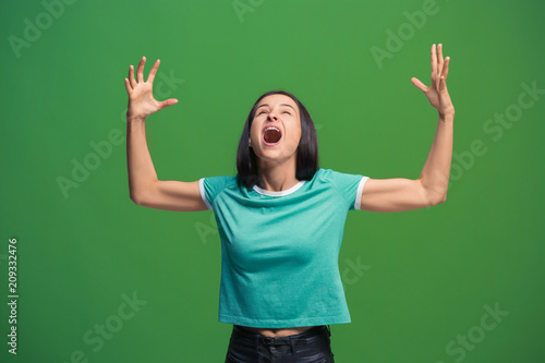 Winning success woman happy ecstatic celebrating being a winner. Dynamic energetic image of female model