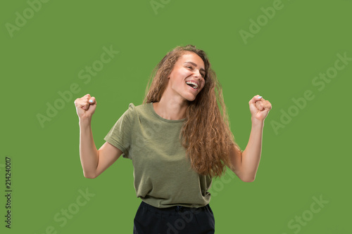 Winning success woman happy ecstatic celebrating being a winner. Dynamic energetic image of female model