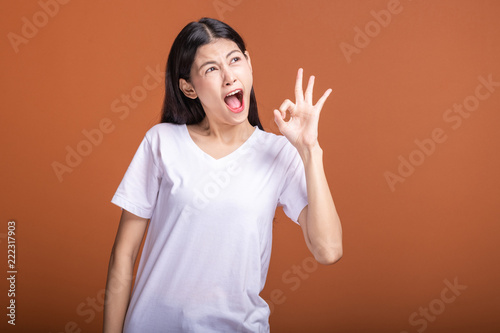 Winning woman isolated over orange background.