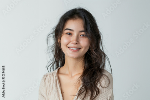 With a blend of casual and professional attire, this woman exemplifies modern office fashion while maintaining a clean, simple style.