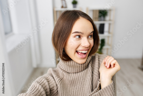 woman camera phone home phone emotion selfie mobile blogger photo mobile smartphone