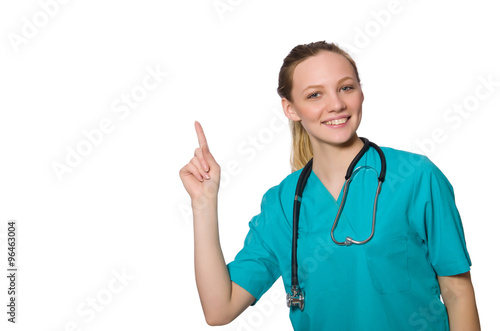 Woman doctor isolated on white