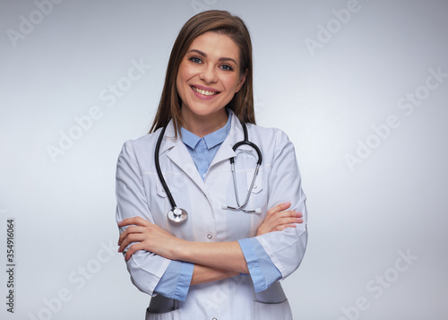 Woman doctor with crossed arms.