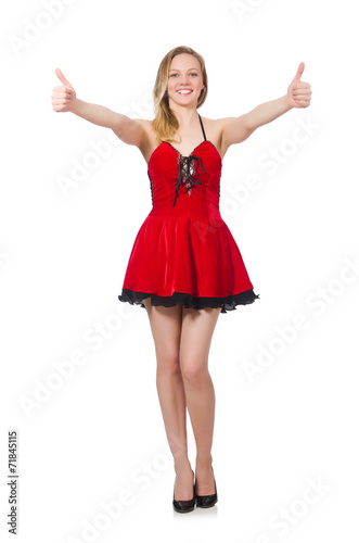 Woman giving thumbs up isolated on white
