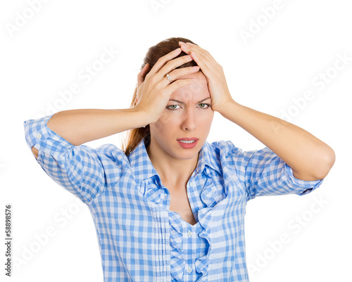 Woman having migraine, headache, stressed out
