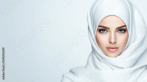 Woman in hijab, beauty portrait, studio background, skincare ad