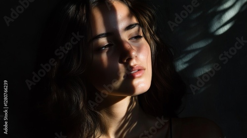 Woman in shadow, portrait, indoor, natural light