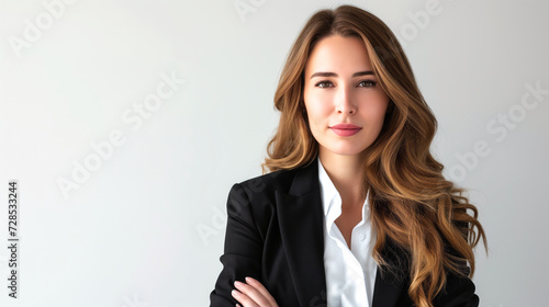 woman in the business world, radiating leadership and determination against a clean white backdrop