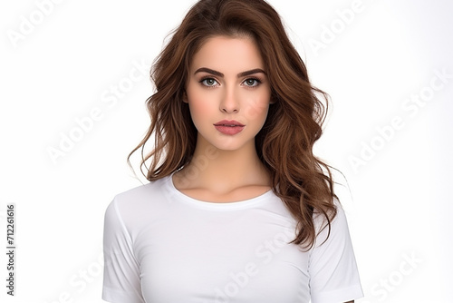 Woman in White Tshirt Mockup created with Generative AI