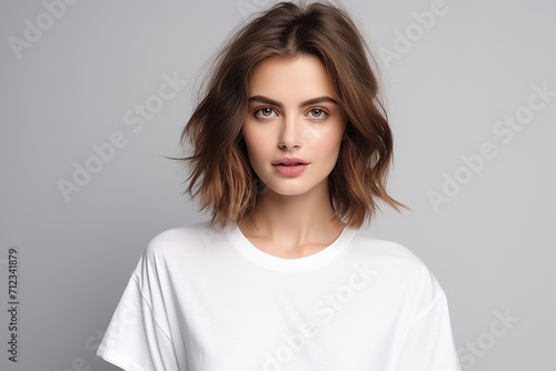 Woman in White Tshirt Mockup created with Generative AI