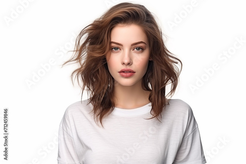 Woman in White Tshirt Mockup created with Generative AI