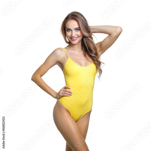 Woman In Yellow Swimsuit Posing On Transparent Background