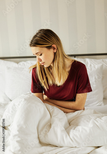 woman pain girl bed menstrual health period menstruation cramp stomach female young painful cycle pms