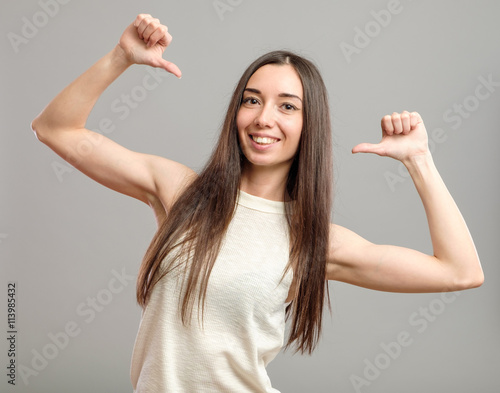 Woman pointing at herself