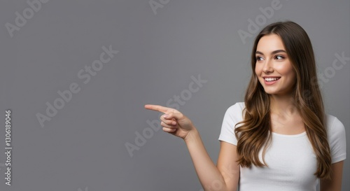 Woman pointing. directing attention.