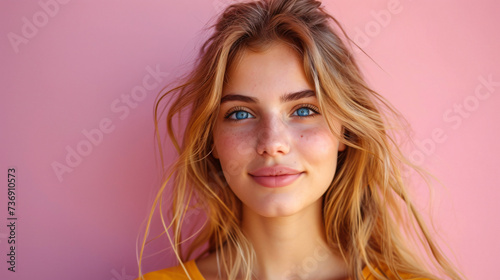 Woman pointing finger on isolated solid background, indicating direction or emphasis in a professional or casual setting.