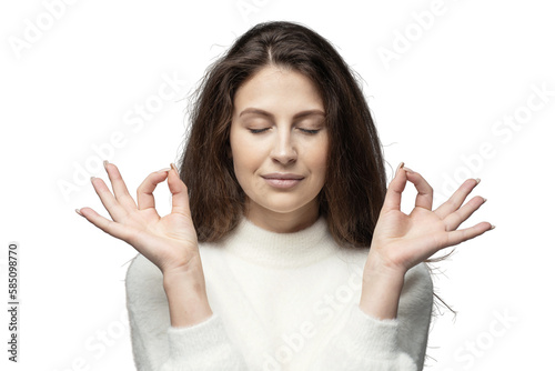 Woman pose lotus balance and harmony, relieves stress, transparent background, png, isolated.