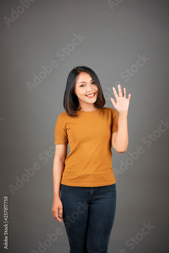 Woman say hello