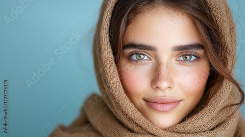 Woman, scarf, portrait, studio, beauty, skincare, background, advertising